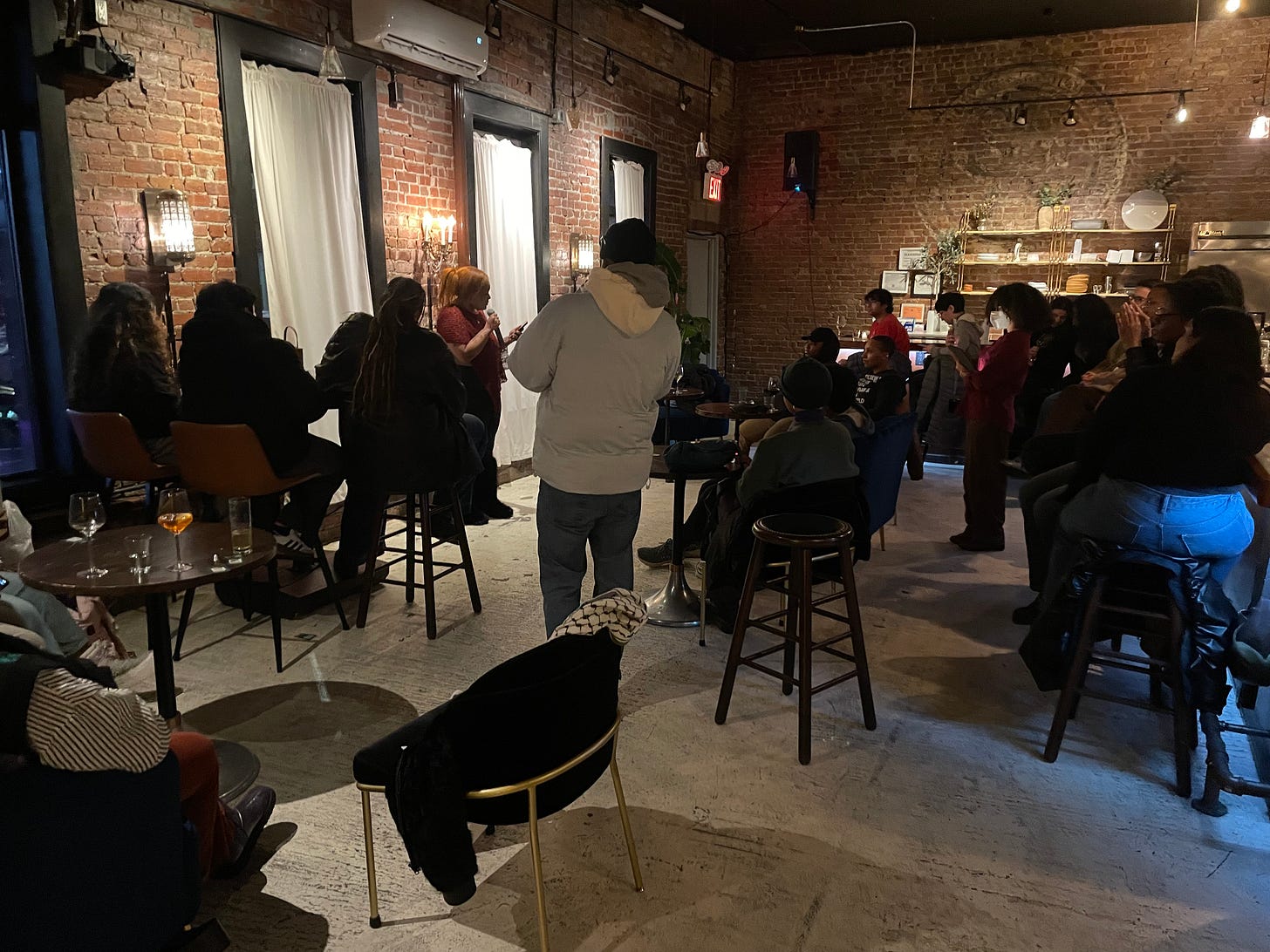 This past Sunday I had the privilege of reading this edit of Certain Writers Make Me Want to Die at Ebony Tomatoes Collective’s Storytelling Slam at Saint James Libations on Stanhope Street. It’s an essay that tours my frustration as a writer just getting their start as the world crumbles, and, as Ava said in their introduction of my sharing, is a salve to those of us who got plenty of rejection letters this year. You can find the messy original blog edit here and the extended published edit here. Check out Ebony Tomatoes Collective and their work on their website!